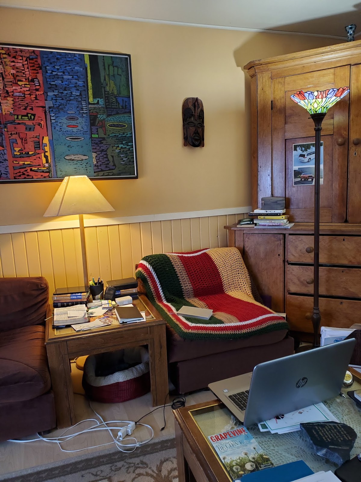 Oh by the way, here are a couple of photos. The first one is my writing nook tucked in at the back of the living room.